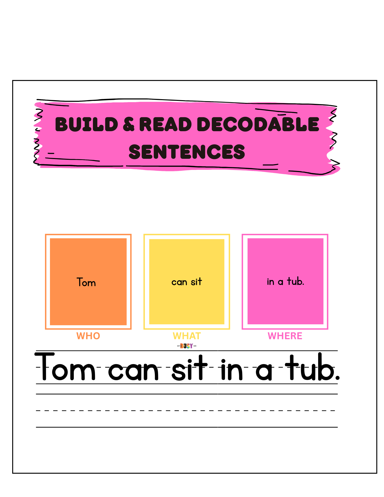 What’s included ? – Build & Read Decodable Sentences mat and 18 sentence cards.