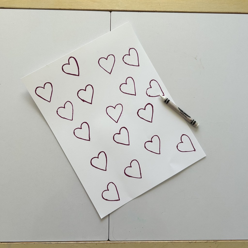 Now , hand them paintbrush and watercolors and let them paint over the white paper.