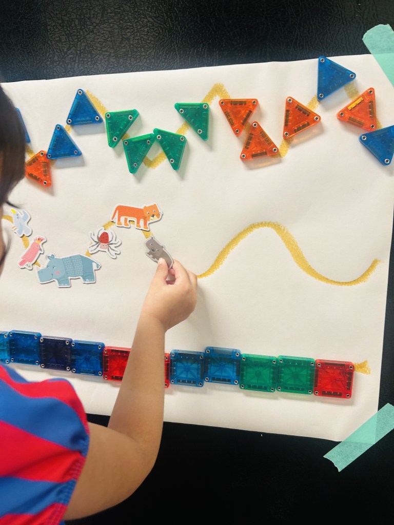 If you don’t have magnets handy then using blocks or toys also works for this activity and it will keep them busy for quite some good time.